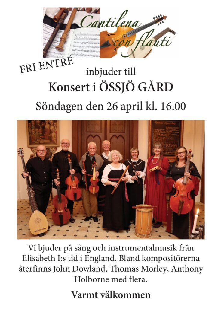 Välkomna på konsert med ljuvlig musik från 1500- och 1600-talet i gårdens herrgårdsmiljö.